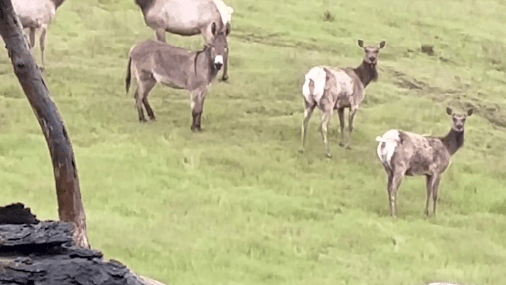 In 2024, a hiker came across the donkey, once called Diesel, who was now rolling with a herd of Roosevelt Elk (Cervus Canadensis Roosevelti) apparently happy and healthy. Diesel, who got spooked on a hike in 2019, was rediscovered just a few miles from where he got lost in California. His old owners were just relieved that he was OK and “…living his best life”.